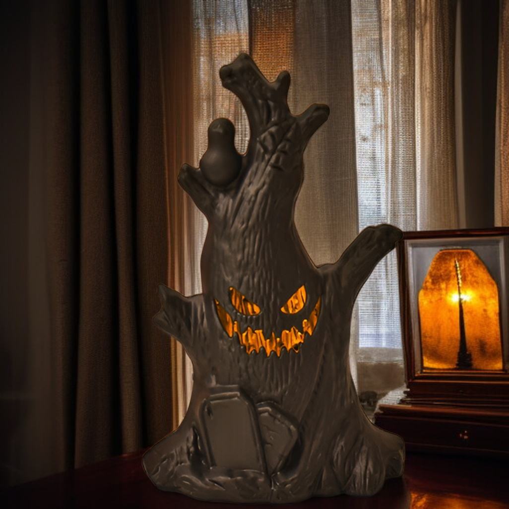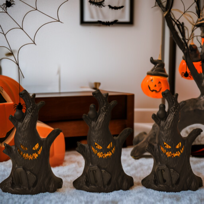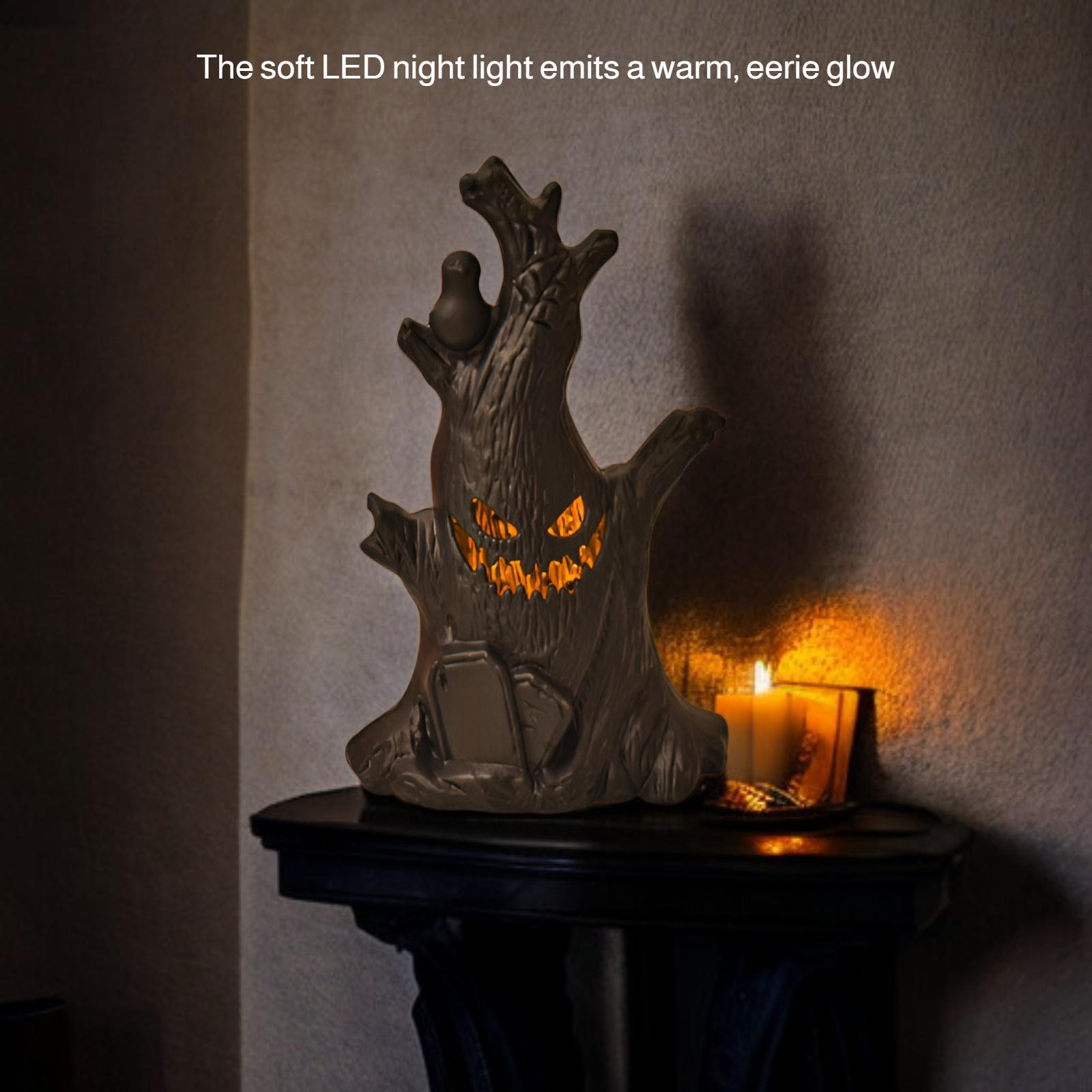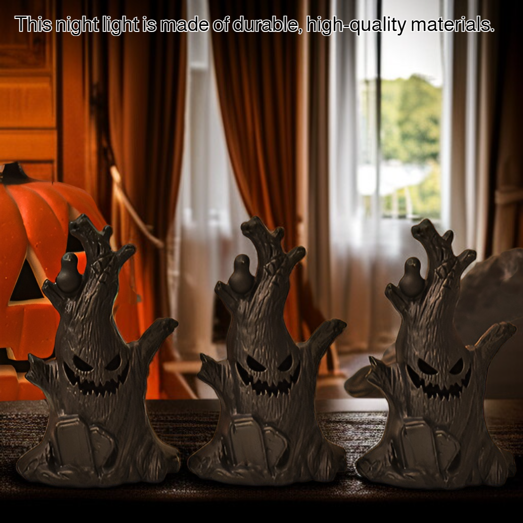 ● Soft LED night light offers a warm, spooky glow that creates a cozy atmosphere for Halloween parties, trick-or-treating, or seasonal home décor.