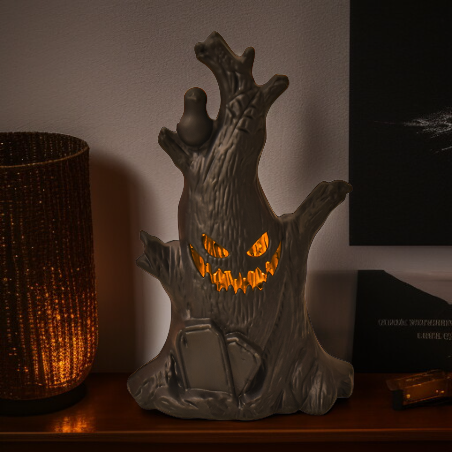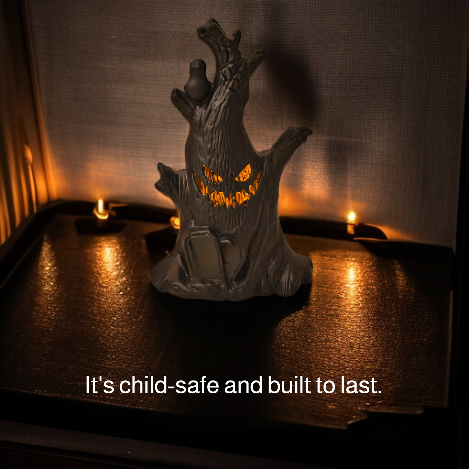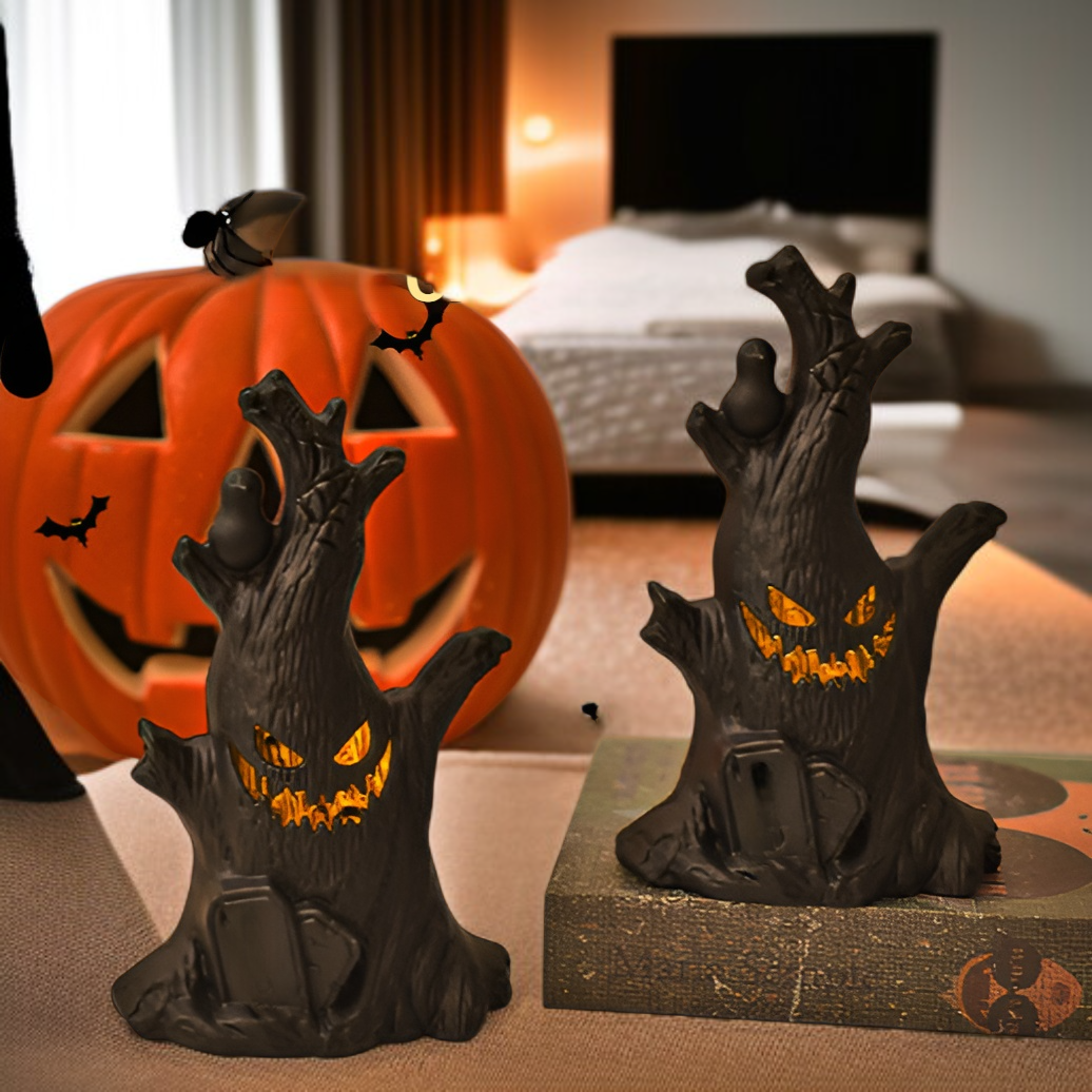 ● Soft LED night light offers a warm, spooky glow that creates a cozy atmosphere for Halloween parties, trick-or-treating, or seasonal home décor.